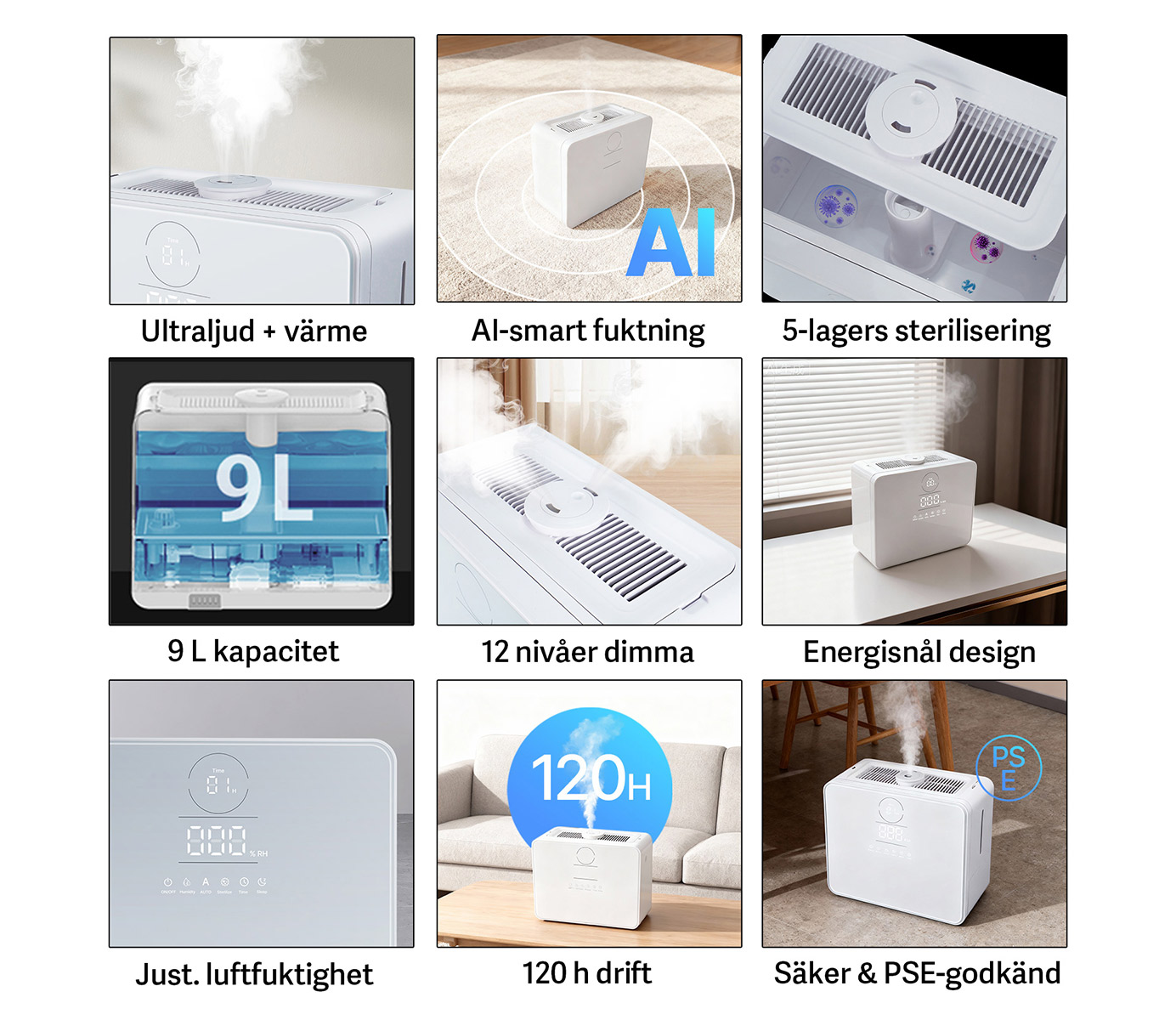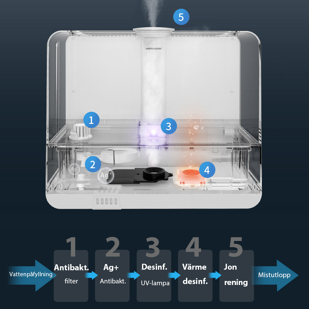 Typ av befuktning: ultraljud + uppvärmning