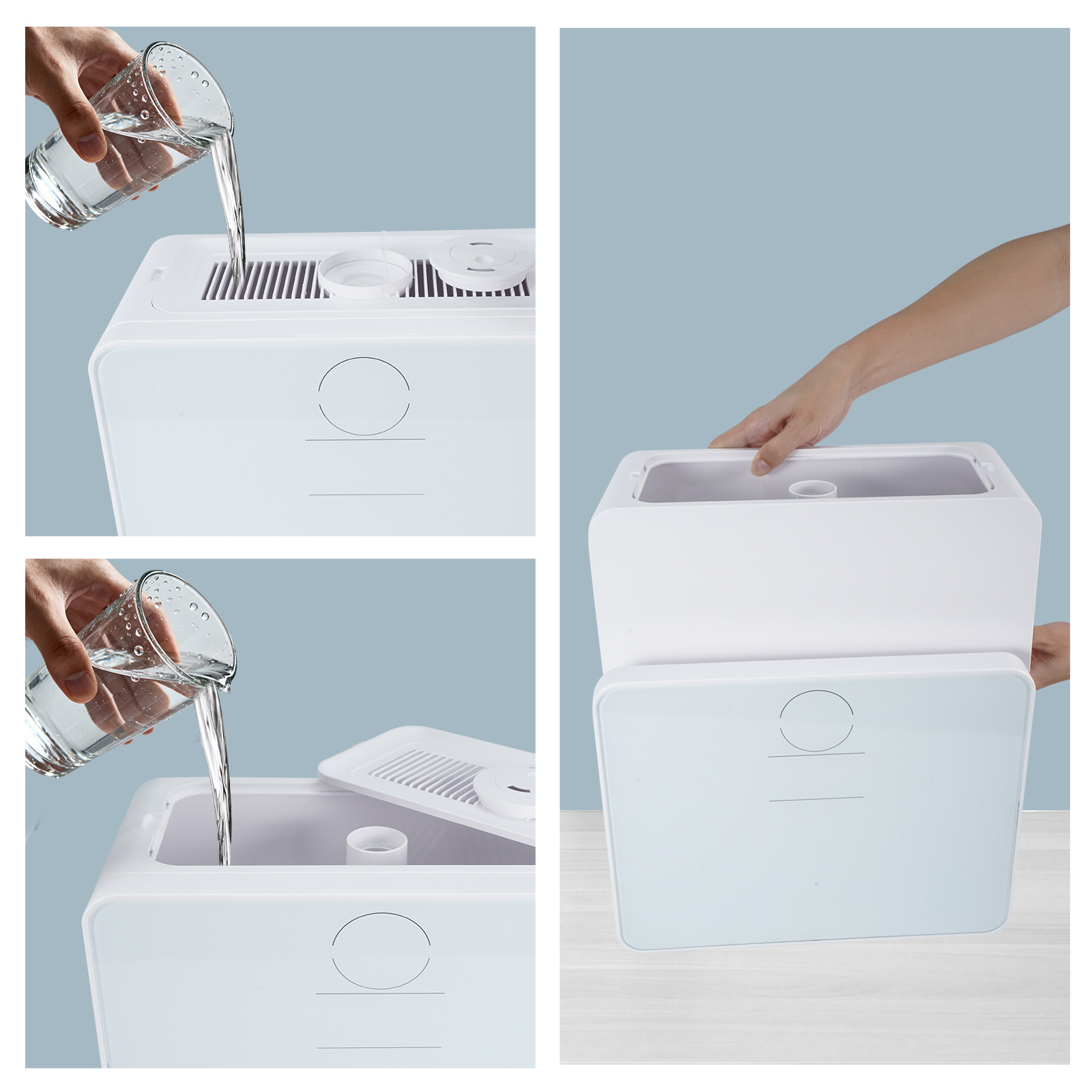 Med ungefär dubbelt så stor vattentank som en vanlig luftfuktare minskar påfyllningsbehovet avsevärt. Endast en påfyllning behövs för upp till 120 timmars (ungefär fem och en halv dag) kontinuerlig drift.